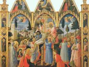O retábulo, executado por Beato Angelico entre 1432 e 1434, está conservado no Museu Nacional de San Marco, em Florença. O painel central do retábulo sagrado, dedicado à deposição de Jesus, segue um esquema piramidal em que se inserem a faixa horizontal da paisagem e a figura diagonal de Cristo, que se destaca pela cabeça reclinada e pelo corpo oblíquo. As cores são brilhantes e os detalhes muito ricos; o chão é coberto de plantas, pintadas nos mínimos detalhes, que aludem à primavera, ao futuro renascimento de Cristo.