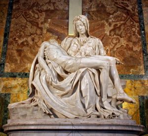 A obra pode ser admirada na Basílica de São Pedro, no Vaticano: é a mais famosa escultura em mármore de Michelangelo Buonarroti, criada entre 1497 e 1499, quando o artista tinha pouco mais de 20 anos. É considerada uma das maiores obras-primas artísticas de todos os tempos: retrata a naturalidade, o apelo poderoso e a emoção do sentimento de piedade da Virgem para com o cadáver de Jesus, deitado sobre as suas pernas. Após os danos de vândalo sofridos em 1972, a estátua é protegida por uma caixa de cristal especial.